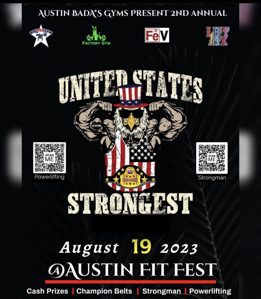 The United States Strongest, hosted by Big Tex Gym, Factory Gym, Iron Gym, and Lift ATX, will feature national qualifying strongman and powerlifting events. There will be over $5k in prizes from these competitions so you know competitors are ready to bring their A game and put on a show.